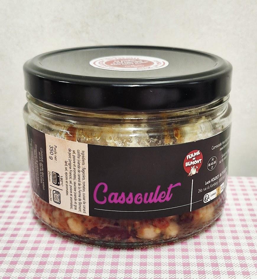Cassoulet au canard : flageolets, tomates, manchon de canard confit, saucisse et lard.
