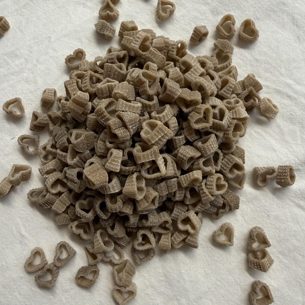 Spécialité à base de blé tendre transformée a la ferme, blé cultivé en agriculture raisonnée, séchage lent à basse température.
