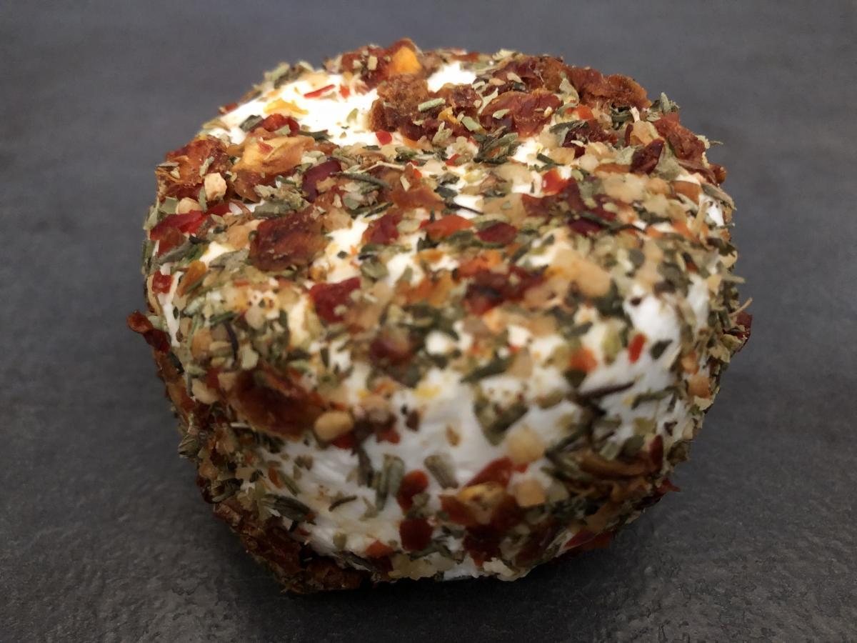 Fromage de chèvre frais au lait cru mélange arrabiata (tomate, ail, poivron rouge, basilic, origan, thym, romarin, piment).
