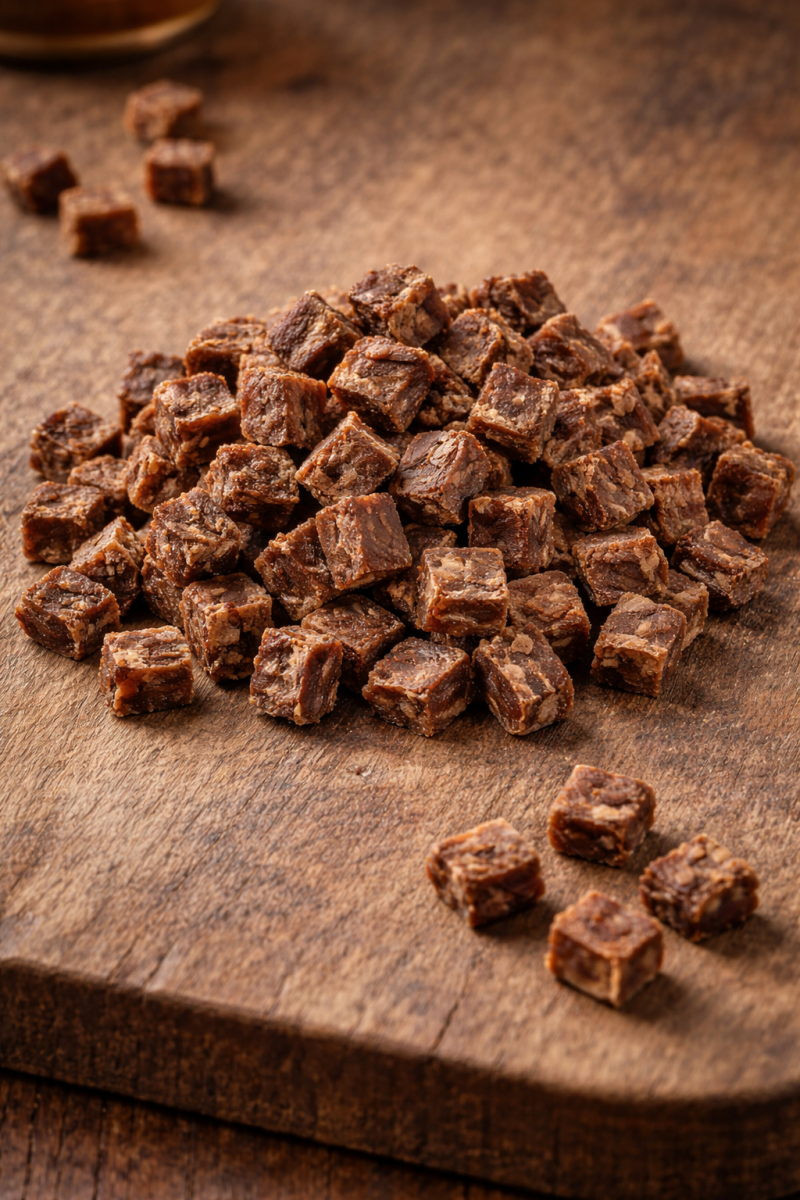 Ces friandises sont composées de 100% de viande, et donc faciles à digérer. ☀️A utiliser comme friandise classique, ou pour récompenser les ordres. 🥇 (idéal pour les cours d'éducation)  100 grammes, soit plus de 80 friandises. 🌱 Après ouverture du sachet, conservez les dans un endroit sec et à l’abri de l’humidité et du soleil. Ne laissez jamais votre chien sans surveillance lorsqu’il mange, mâche ou mastique. Attention à ce qu'il mastique correctement, ne gobe pas et n'avale pas de gros morceaux, il risquerait de revomir la friandise ou bien de s'étouffer. Laissez toujours de l’eau fraîche à disposition de votre animal. Attention à la protection de ressource si votre avez plusieurs animaux. Au besoin, séparez chaque animal dans une pièce lorsqu'ils mangent ou mastiquent. Les friandises étant naturelles, il est normal d’observer des différences de taille, de forme et de couleur d’un paquet à l’autre.  Ce produit est une friandise, en aucun cas une source d’alimentation. Donnez comme collation ou récompense selon l’âge, le poids et l’activité de votre animal en ajustant en conséquence la ration de nourriture. Des sachets anti humidité peuvent être ajoutés dans les sachets, ceux ci ne sont pas comestibles et ne doivent pas être donné à l'animal. L'équipe de Pavicha'Sweet ne pourra être tenue pour responsable en cas d'accident, d'intolérances ou d'allergies à l'aliment, de vomissements ou de diarrhées.