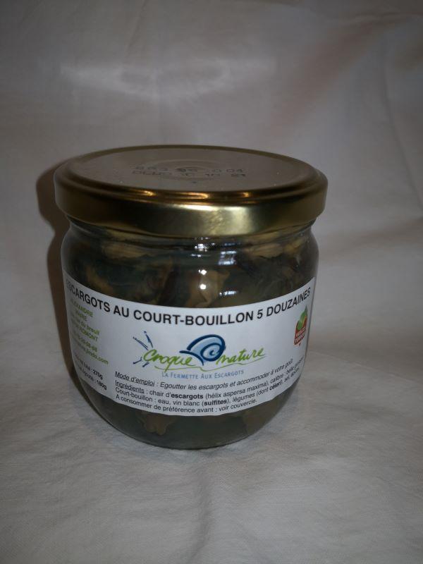 Produit stérilisé. DLUO 3 ans: voir date sur couvercle. A conserver à température ambiante, après ouverture le produit se garde 6 jours au réfrigérateur. Ingrédients: chair d'escargots calibre moyen ( Hélix Aspersa maxima).Court-bouillon: eau, légumes, vin blanc (sulfites) sel, épices.