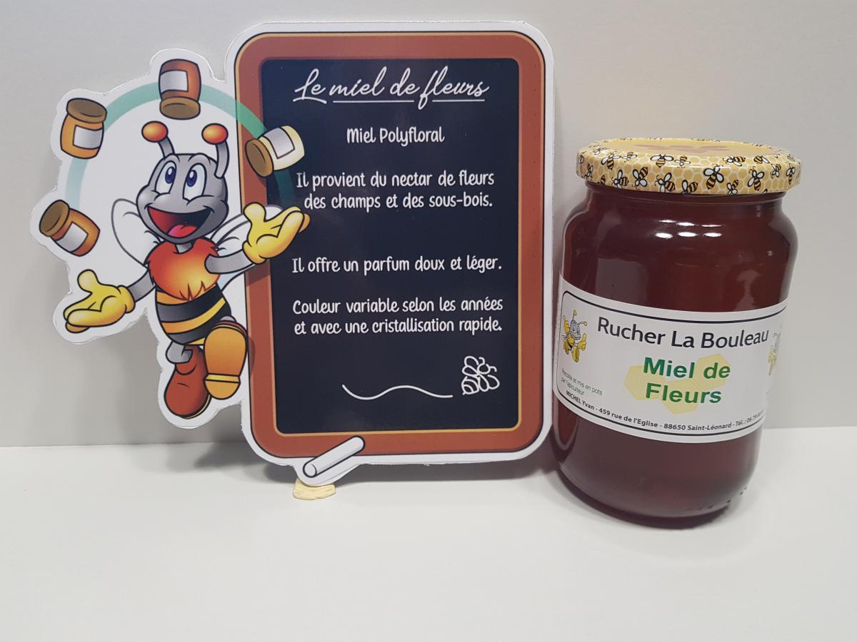 Miel polyfloral. Il est récolté sur les fleurs des champs et de sous bois.