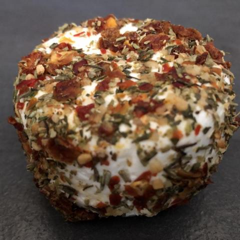 Fromage de chèvre frais au lait cru mélange arrabiata (tomate, ail, poivron rouge, basilic, origan, thym, romarin, piment).