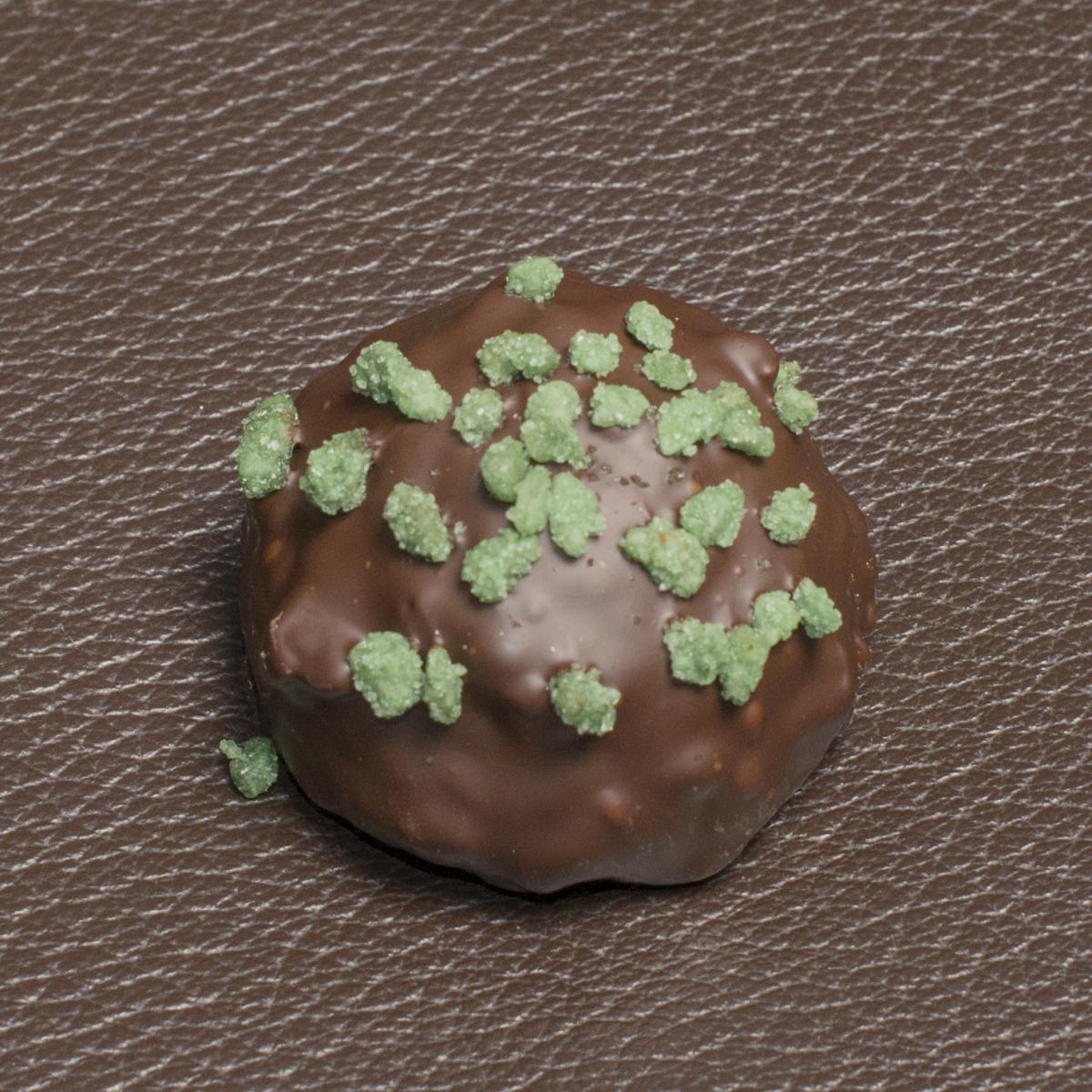 Composition: Beurre de cacao 64% minimum, pâte de cacao, sucre, émulsifiant : lécithine de tournesol, arôme naturel de vanille. Praliné : AMANDE, NOISETTES, huile d’AMANDE raffinée, lécithine de SOJA, arôme vanille.