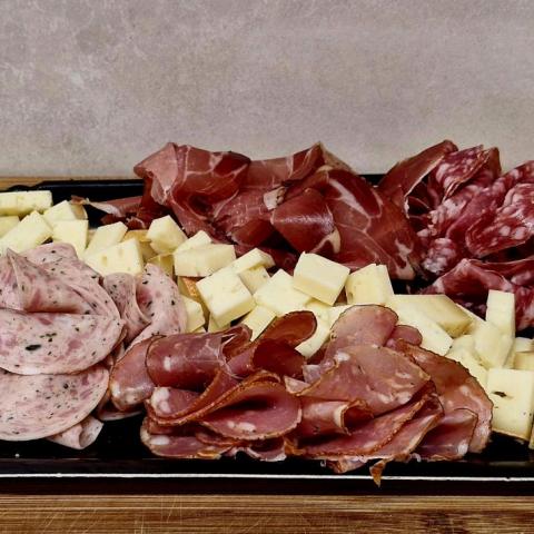 Planche composée de 200g de fromage et 150g de charcuterie.