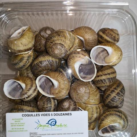 Description: 60 coquilles d'escargots (helix aspersa maxima) Vides issues de notre élevage.